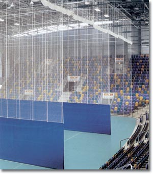 Die Vorteile liegen auf der Hand: minimale Belastung der Dachbinder durch geringe Eigengewichte. Die Konstruktion ist kostengünstig, die Montage einfach. Hallenteiler sind ideal, wenn die akustische Trennung